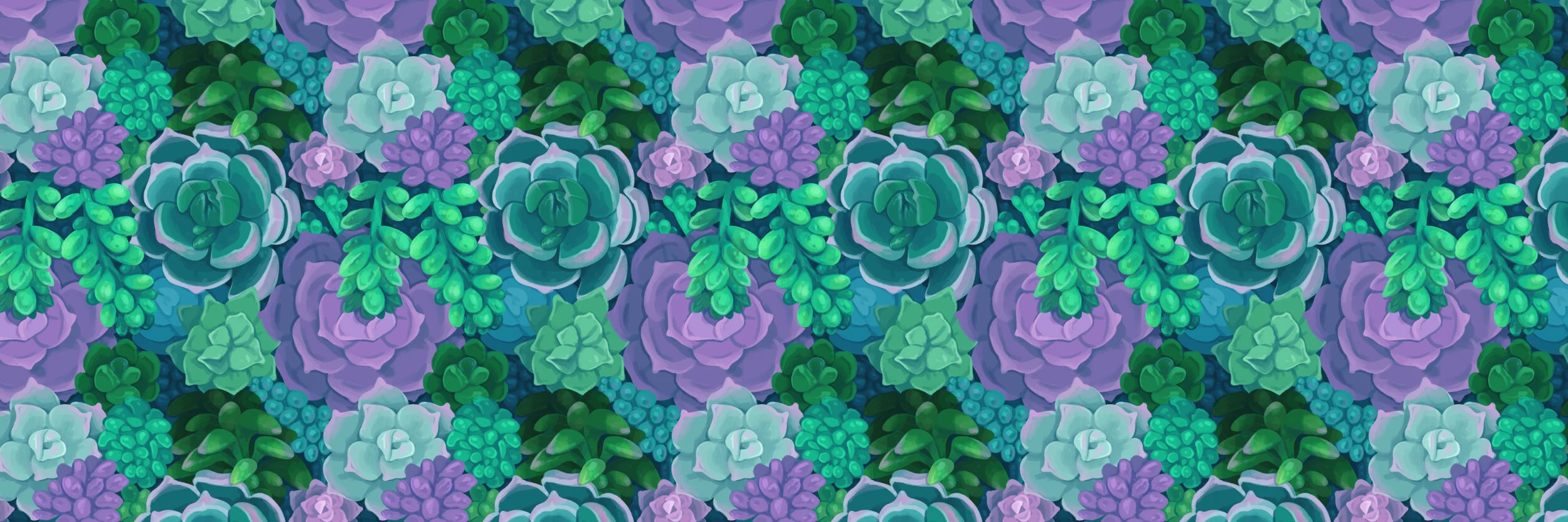 I oscillate between Photoshop CC on my desktop with a 22HD Cintiq from 2014 (these are probably only sold on Ebay these days as the modern ones are quite different) and Procreate for iPad. I choose my tools based on my needs: for large files like patterns I need the processing power of my desktop and the specialized tools that Photoshop offers; for simpler/smaller works, Procreate and iPad are great for being able to create without being tied to a desk.